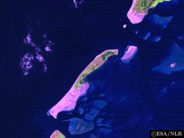 het eiland Vlieland loopt, naar het dorp toe. (en