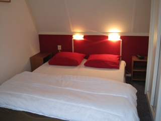 ![]() 2 éénpersoons bedden met een kinderledikant |